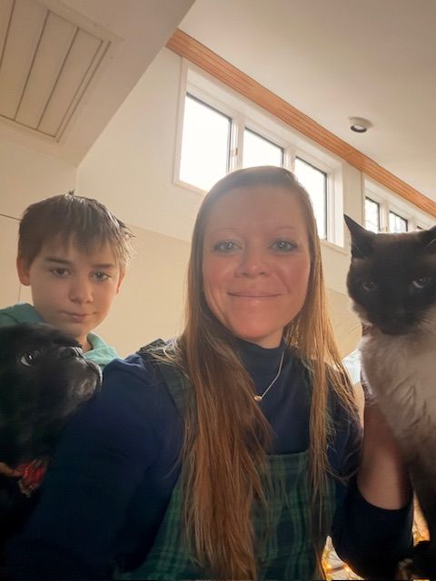 My love for animals has been passed down to my five boys—Blake, Jax, Axl, Rafe, and Smith—who share my compassion and commitment. At home, our family cares for a lively crew of three beloved cats (Eleanor, Pancho, Binx), three dogs (Brody, Gemma, Olly), and a flock of spoiled chickens.
